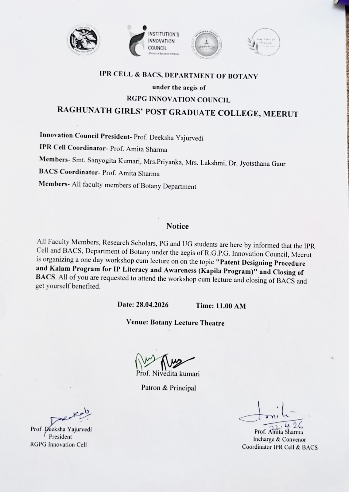 Principal's Desk Prof. Nivedita Kumari